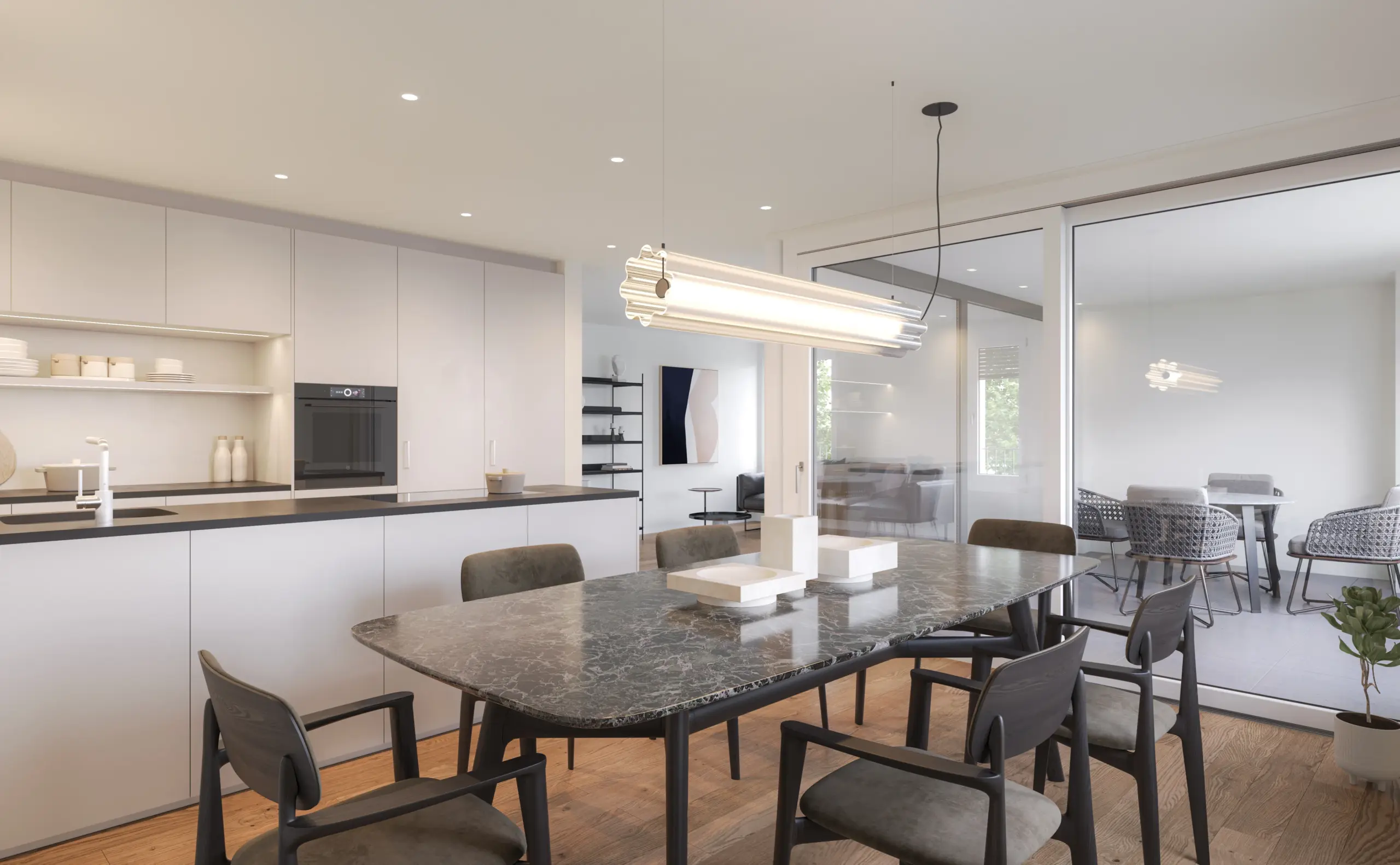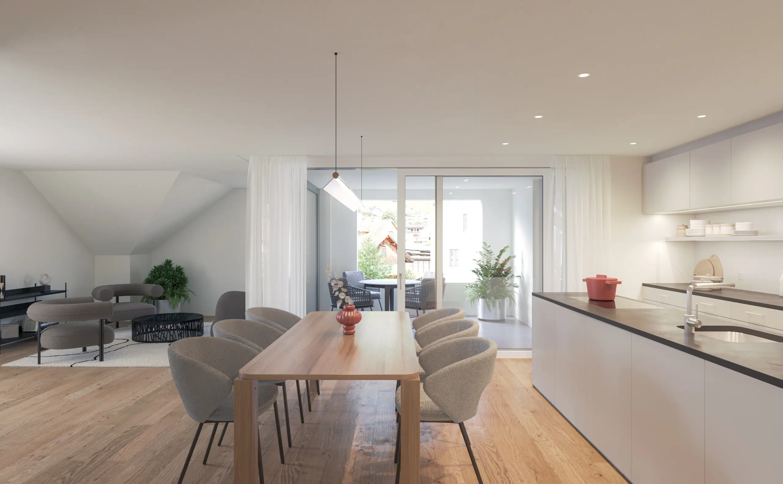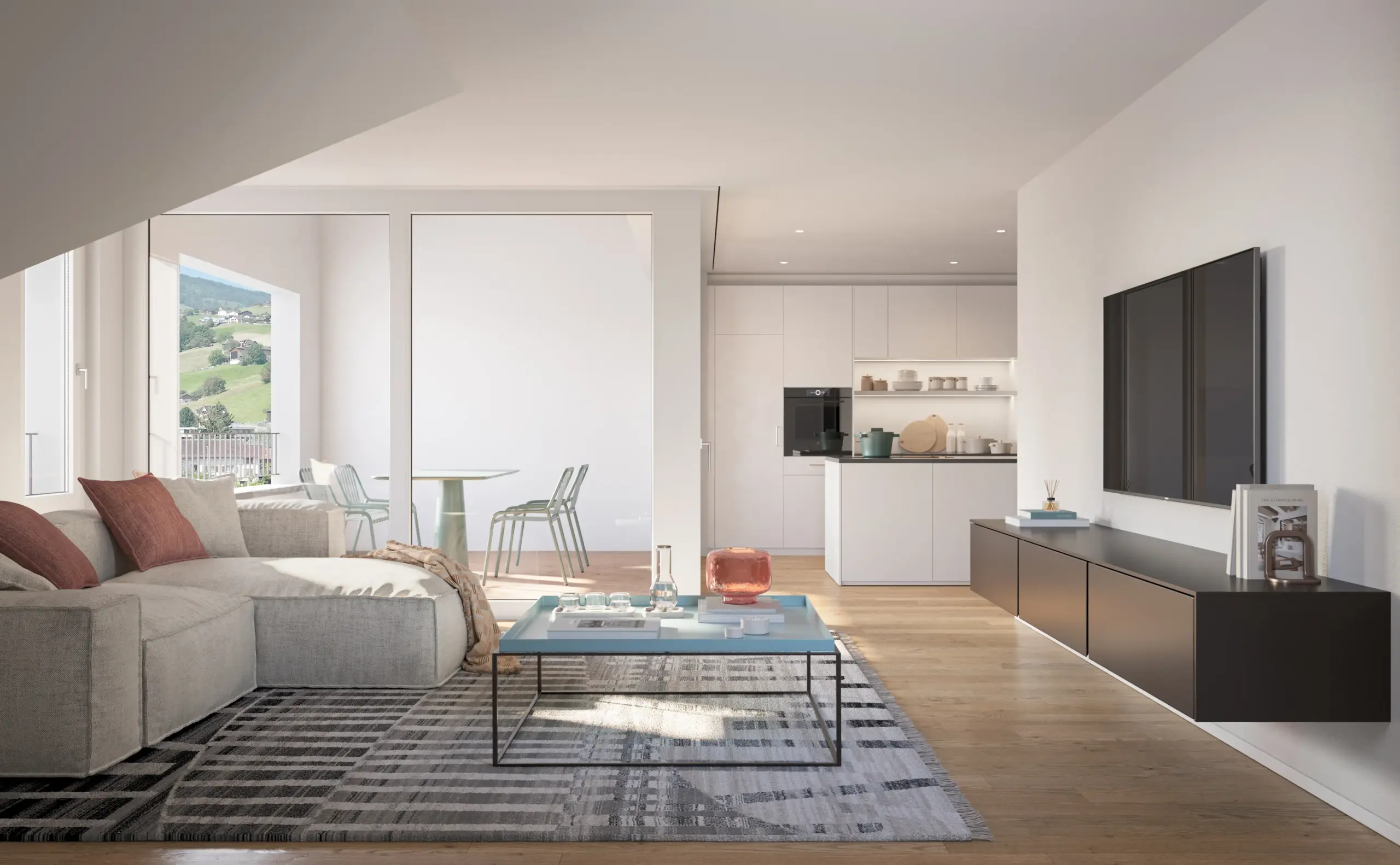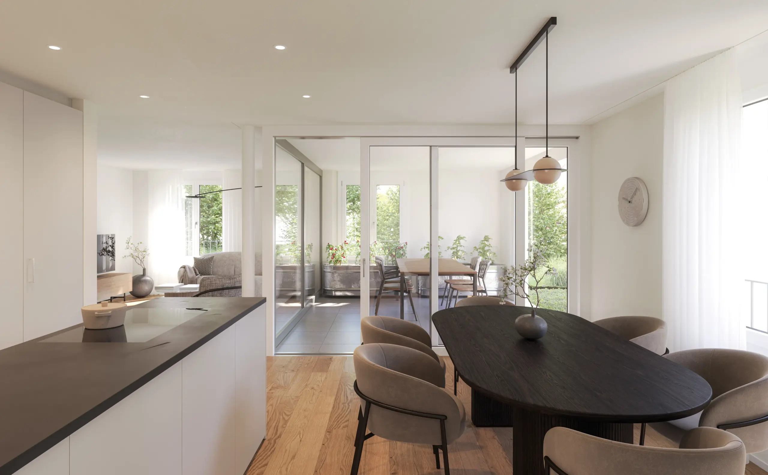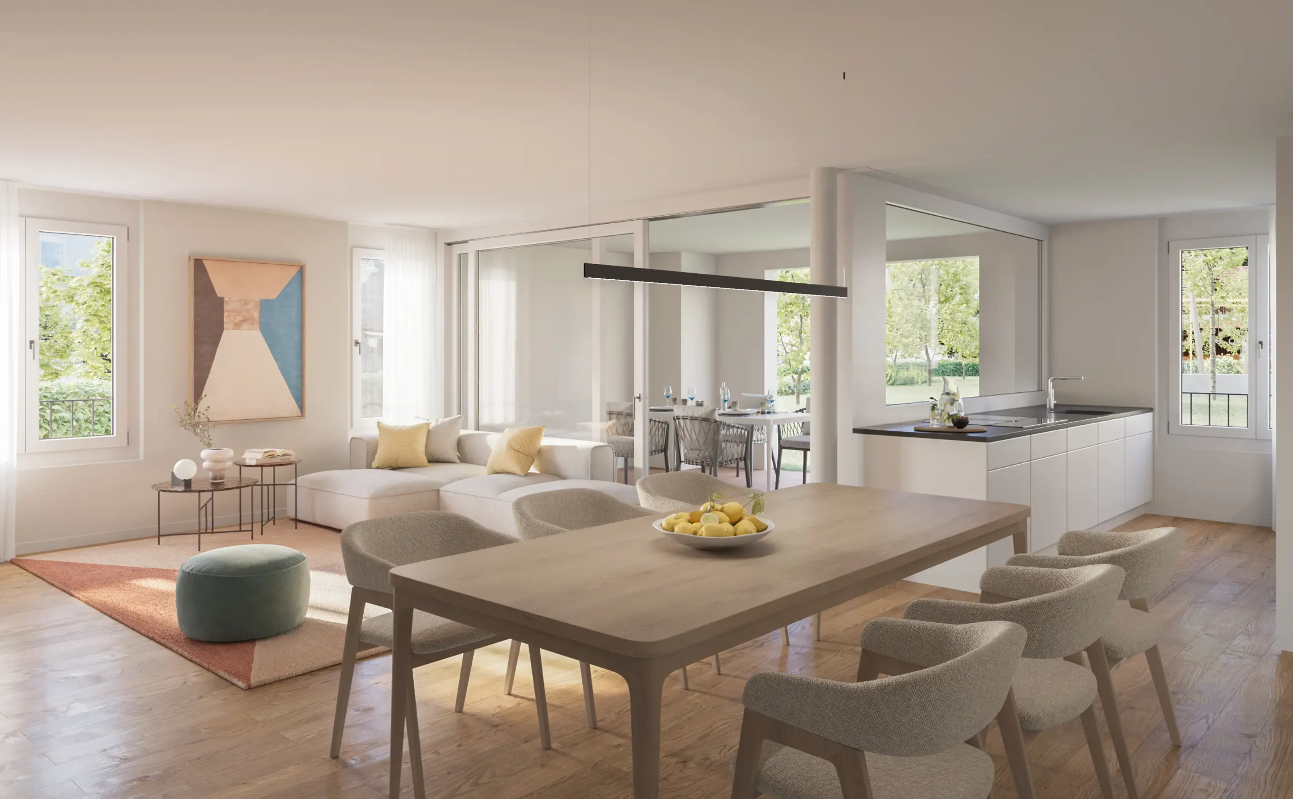 Jede Wohnung besticht durch eine durchdachte Raumaufteilung, hochwertige Materialien und praktische Details, die den Alltag erleichtern. Helle Wohnräume, moderne Küchen und private Aussenbereiche schaffen Komfort und Wohlfühlambiente für alle Generationen.