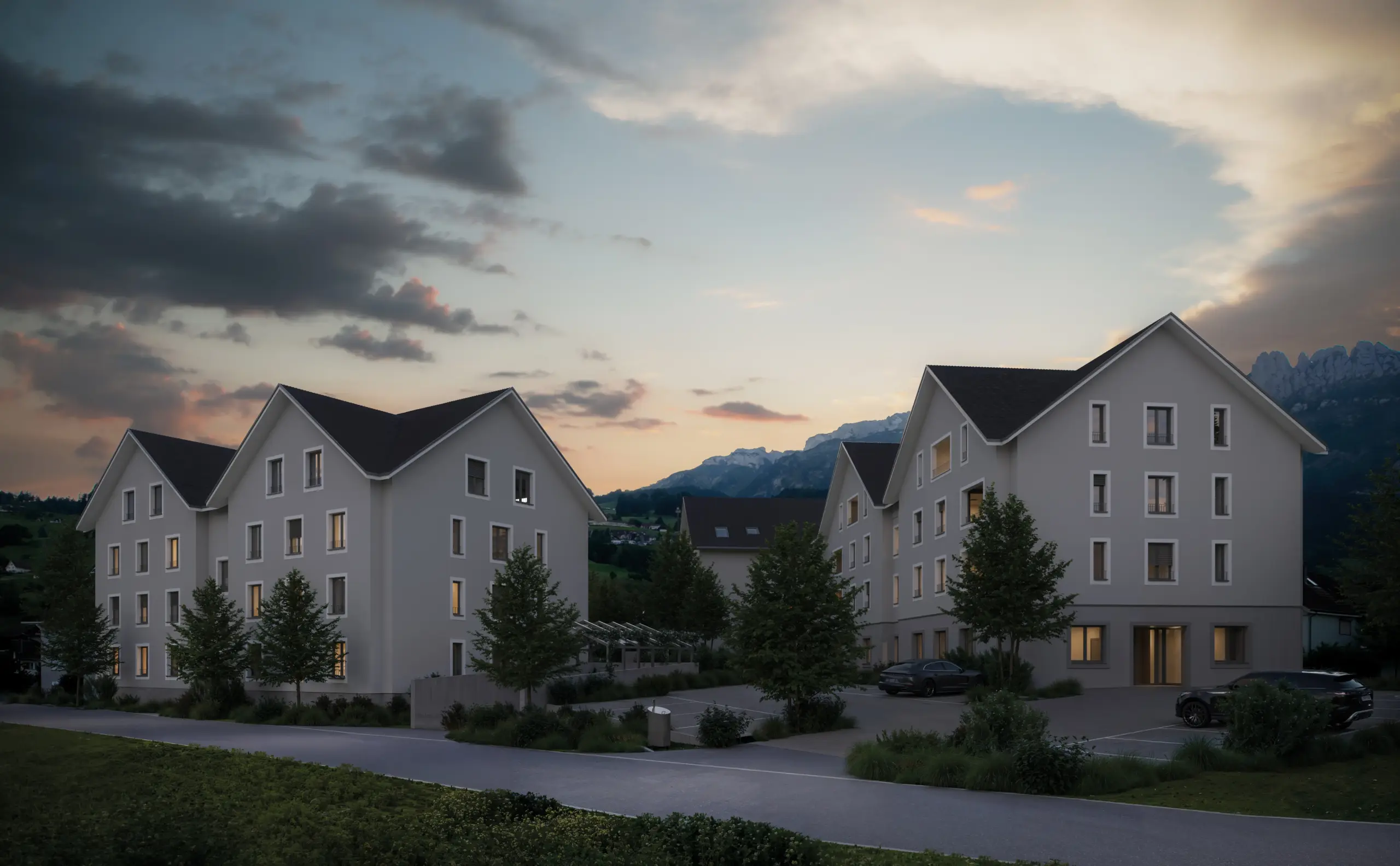 Die Chäsi ist mehr als eine Überbauung – sie ist ein durchdachtes Wohnkonzept mitten in Gams. In drei Mehrfamilienhäusern entstehen 28 Mietwohnungen, die modernes Leben mit ländlichem Charme verbinden.